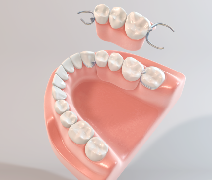 弾性のある特殊な樹脂を使用した部分入れ歯です。金属のバネを使用しないため、審美性に優れています。